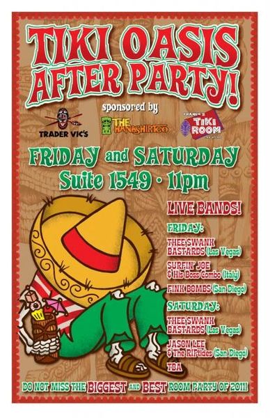 Tiki Oasis 2011 was at The Crowne Plaza Hotel in San Diego, California. The Theme was "South of the Border". From the Tiki Oasis website history ... "A cornerstone of Tiki Style is Exotica music. While Exotica music evokes the allure of the South Seas, almost all great Exotica tunes are built on Latin rhythms. In the early 1960s the founders of Hawaiian Exotica looked to other shores." The theme was centered around influence that the Latin music and lifestyle had on the era during the 60's Tiki scene.